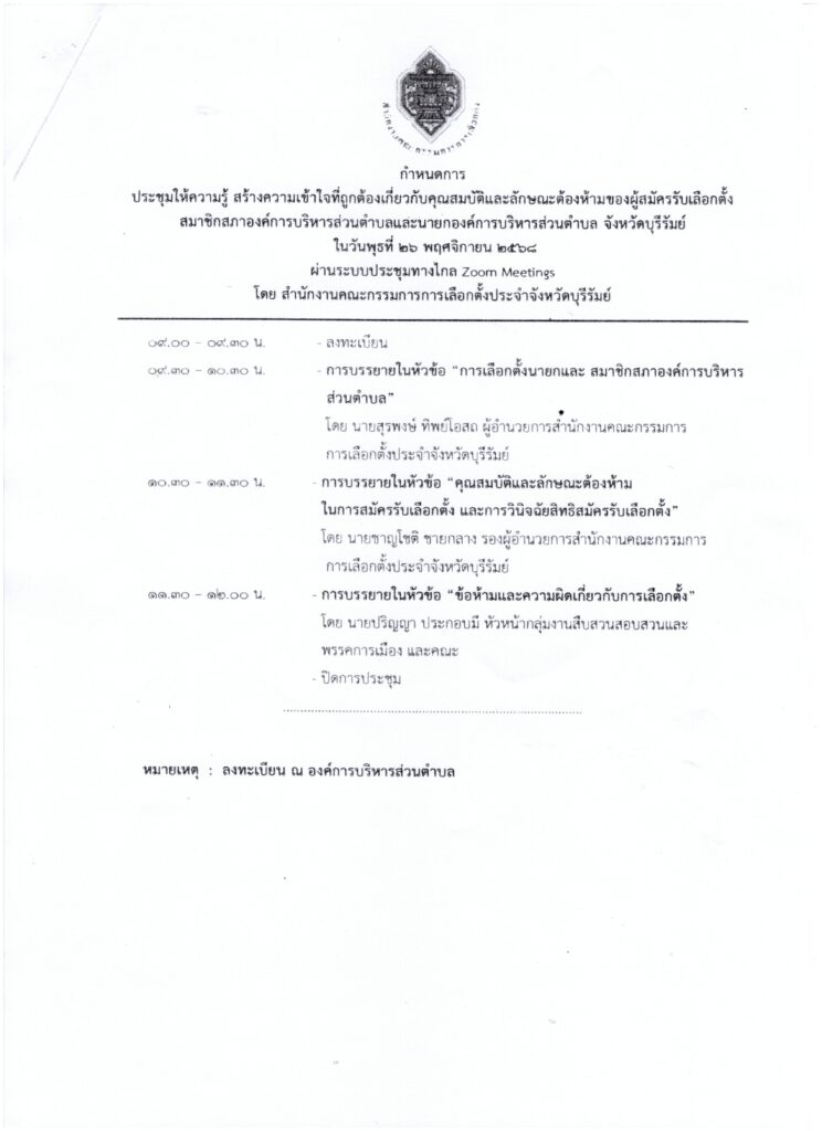 ขอประชาสัมพันธ์การประชุมชี้แจงผู้สมัครรับเลือกตั้งสมาชิกสภาองค์การบริหารส่วนตำบลและนายกองค์การบริหารส่วนตำบล จังหวัดบุรีรัมย์ 25 พฤศจิกายน 2025 Last updated : 25 พฤศจิกายน 2025 องค์การบริหารส่วนตำบลคูเมือง